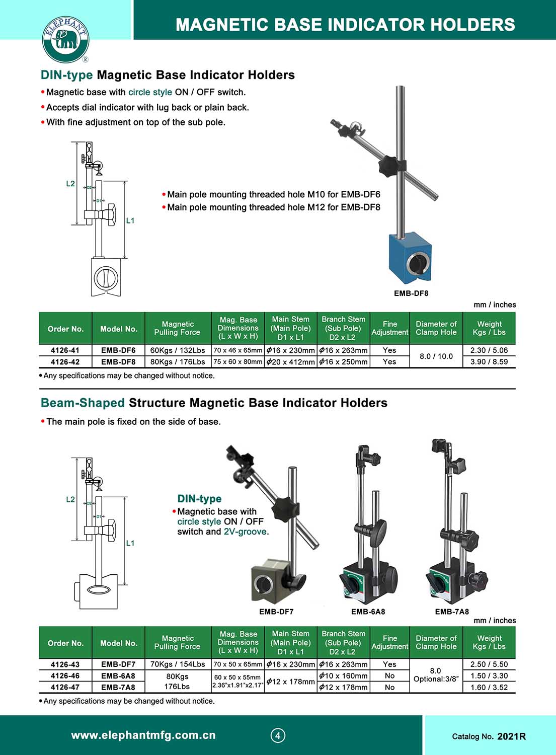 DIN-type MAGNETIC BASE INDICATOR HOLDERS W/Fine Adj.