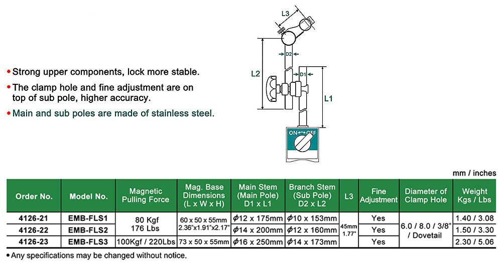 FLS-type PRECISION FORCED LOCKING MAGNETIC BASE INDICATOR HOLDERS W/F