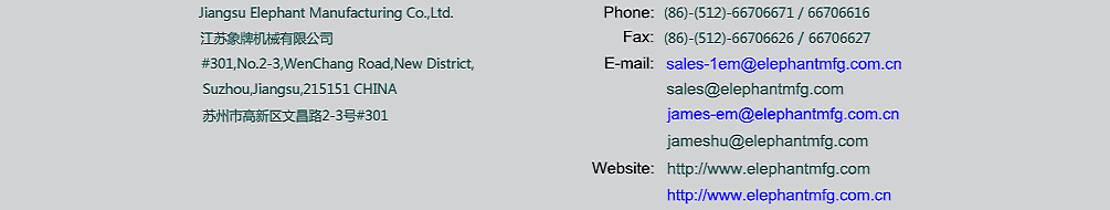 Copyright © 2019 Elephant Manufacturing (Jiangsu) Co., Ltd. All Rights Reserved