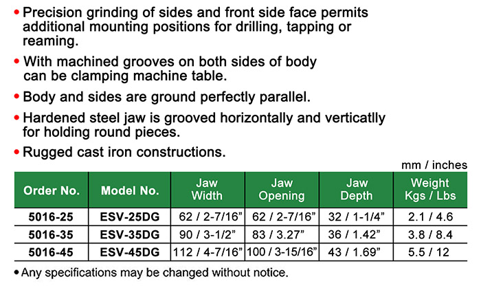 DG-type PRECISION GROUND STANDARD DRILL PRESS VISES