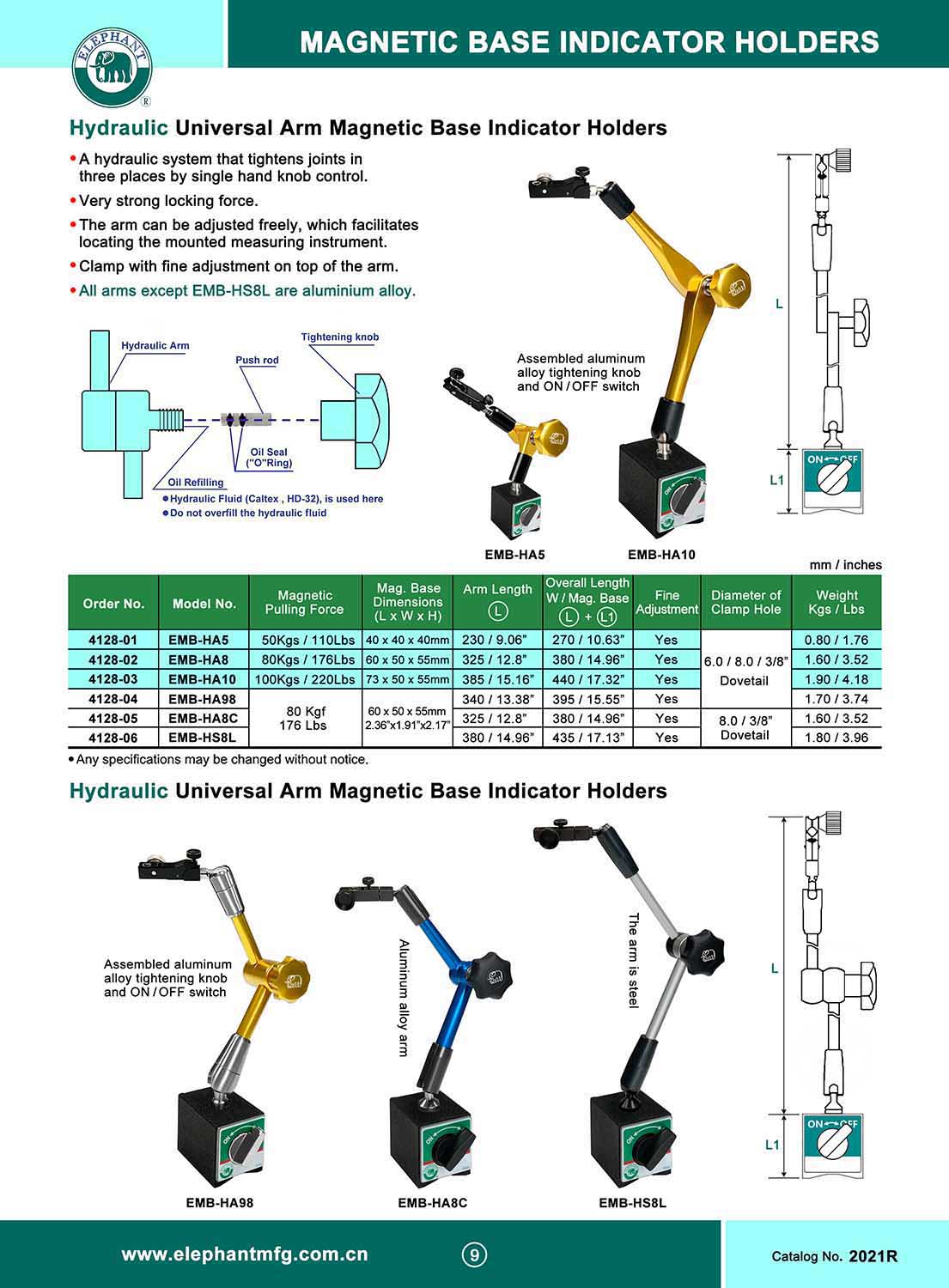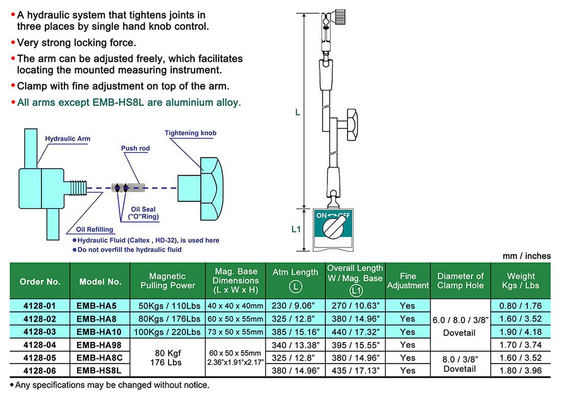 液壓(油壓)萬向臂磁性錶座帶微調