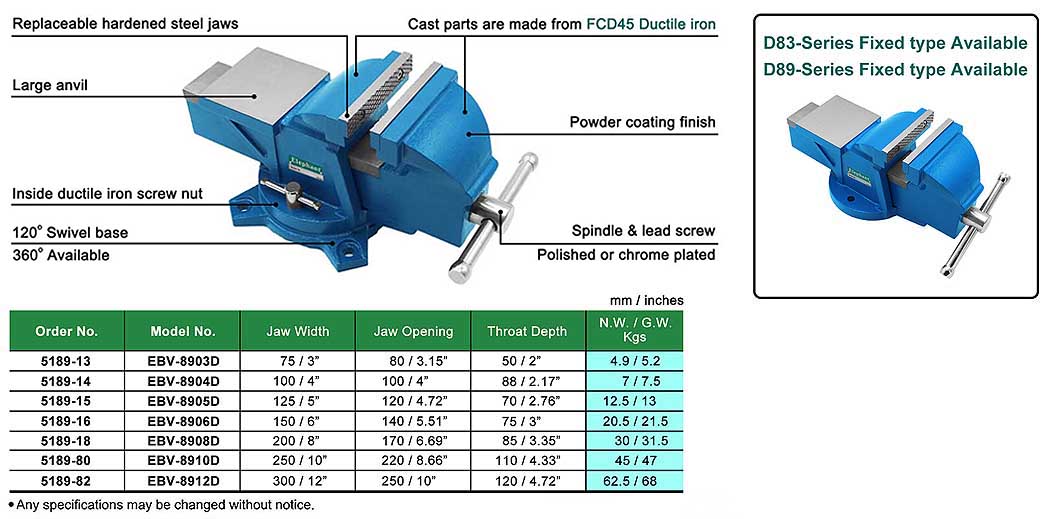 D89-Series MEDIUM DUTY SWIVEL BENCH VISE WITH ANVIL