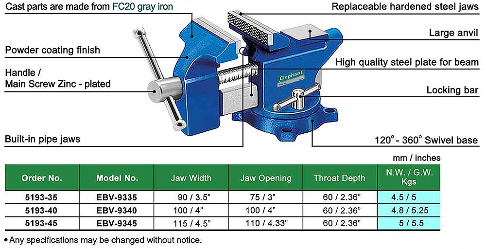 93-Series DIY SWIVEL BENCH VISE WITH ANVIL