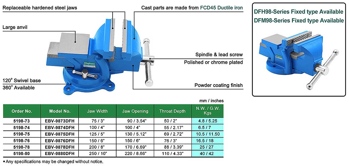 DFH98-Series HEAVY DUTY SWIVEL BENCH VISE WITH ANVIL (EUROPE STYLE)