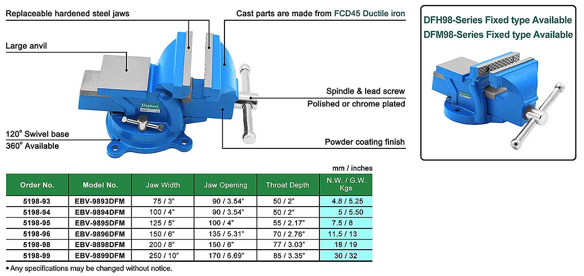 DFM98-Series MEDIUM DUTY SWIVEL BENCH VISE WITH ANVIL (EUROPE STYLE)
