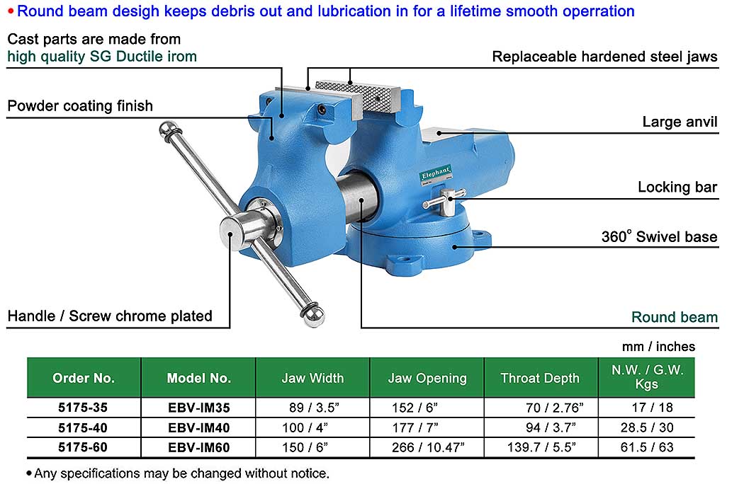 IM-Series INDUSTRIAL MECHANICS SWIVEL BENCH VISE WITH ANVIL