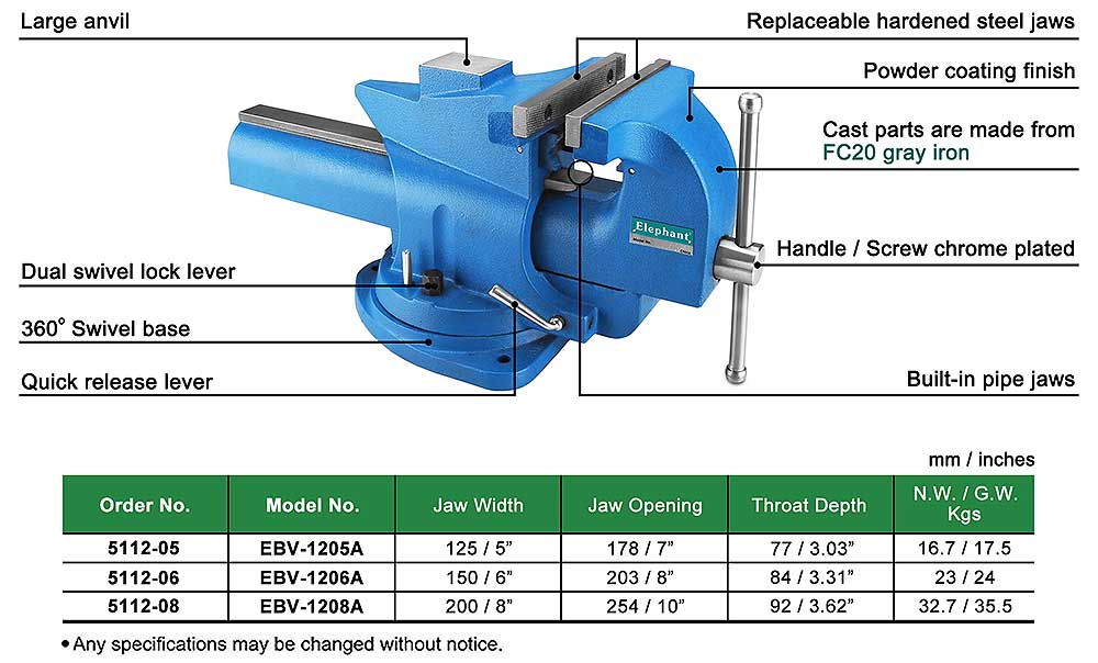 12-Series QUICK RELEASE SWIVEL BENCH VISE WITH ANVIL(HEAVY DUTY)