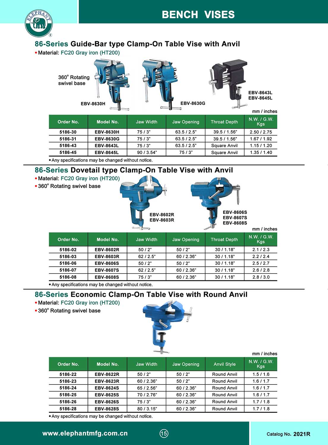 86-Series Dovetail type CLAMP-ON TABLE VISE WITH ANVIL