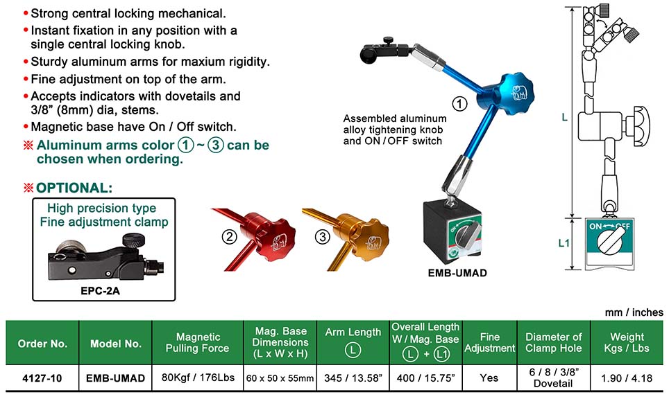 AD-type UNIVERSAL ARM MAGNETIC BASE INDICATOR HOLDERS W/Fine Adj