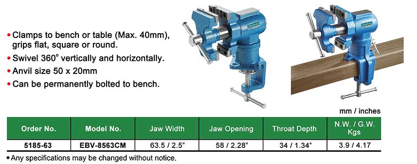 C85-Series MULTI-PURPOSE CLAMP-ON TABLE VISE WITH ANVIL (MINI TYPE)