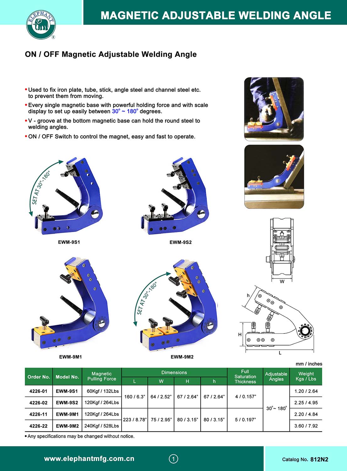 ON/OFF MAGNETIC ADJUSTABLE WELDING ANGLE