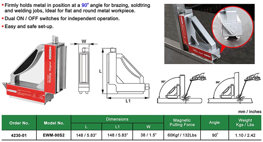 DUAL ON/OFF SWITCH MAGNETIC 90 DEGREE WELDING ANGLE