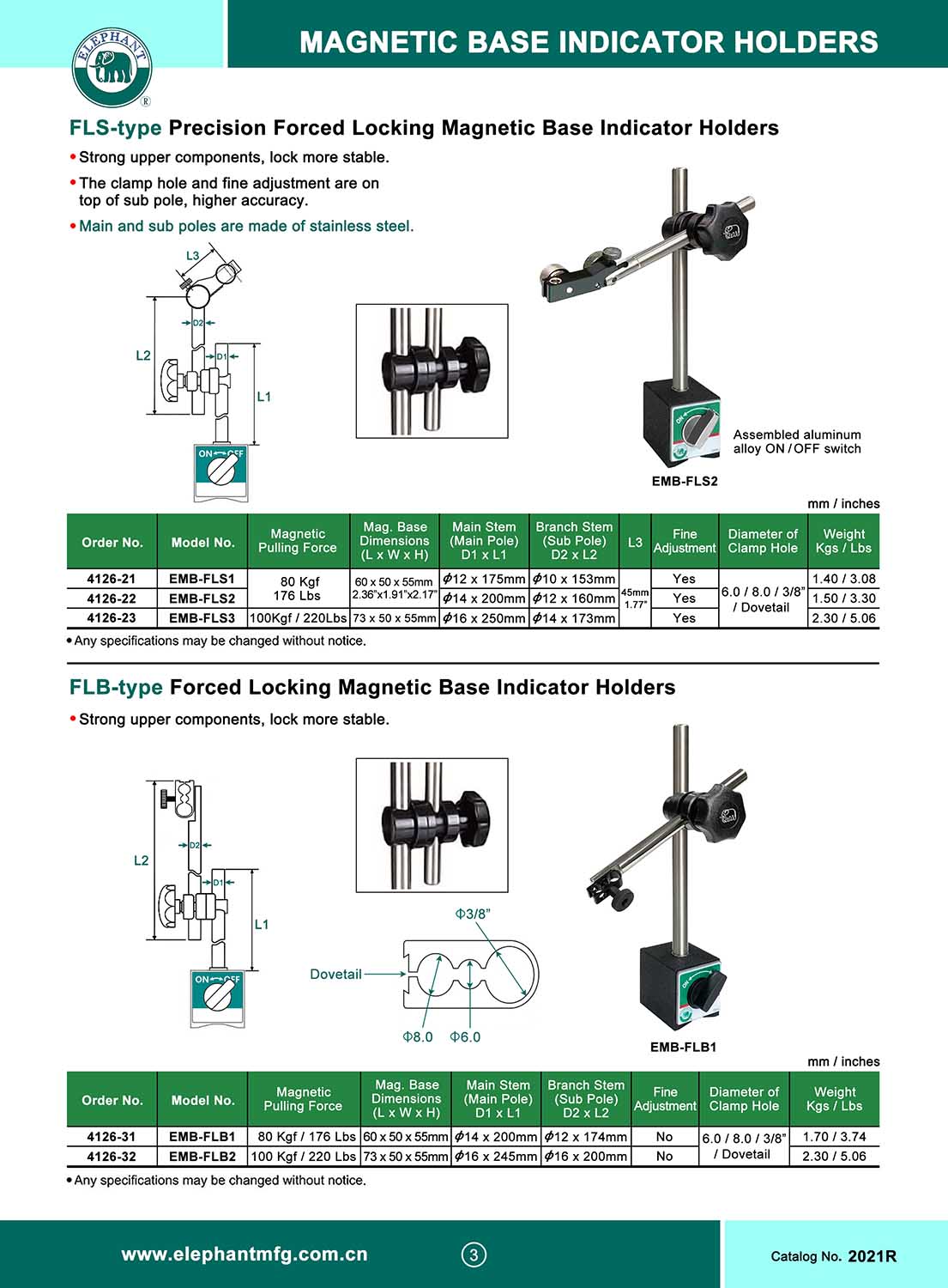 FLS-type PRECISION FORCED LOCKING MAGNETIC BASE INDICATOR HOLDERS W/F